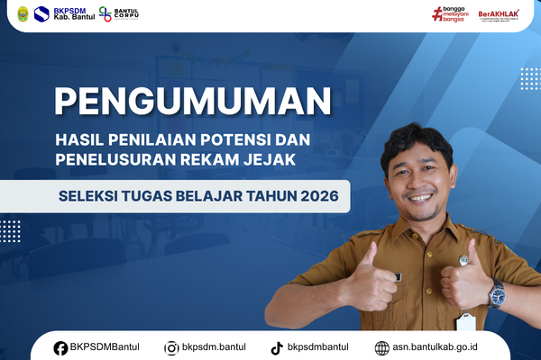 Saatnya mengawal ASN Kabupaten Bantul untuk terus belajar, bertumbuh, dan berdampak dalam mewujudkan “Bantul Maju, Sejahtera, Aman, dan Berkelanjutan yang dijiwai Kebudayaan dan Keistimewaan”.